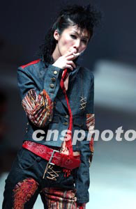 中國“威鵬”服裝春天在北京展示新款牛仔裝,狂放不羈的設計風格凸顯現代人的另類時尚觀念。作者:盛佳鵬