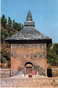 安陽市西北35公里清涼山東南麓修定寺舊址上,屹立著一座華麗壯觀的古塔,俗稱“唐塔”,又名“修定寺塔”。門楣上鐫刻三世佛,故名“三生寶塔”。此塔建于唐朝德宗建中二年(公元781年)到貞元十年(公元794年)之間。1982年國務院將其公布為第二批國家級重點文物保護單位。