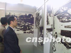 反映六十年前日本法西斯對重慶實施五年多的“政略轟炸”和“戰(zhàn)略轟炸”的大型圖片近日在重慶展出,吸引了眾多參觀者。作者:雷鳴