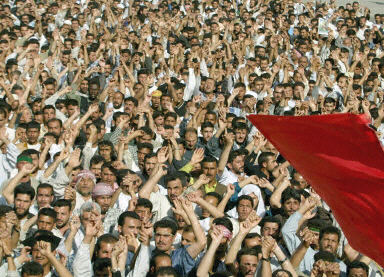 4月14日在伊拉克的南部城市納杰夫,伊拉克的什葉派教徒舉行了大規模的反戰示威游行。