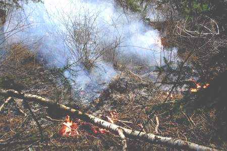 火情就是命令,接到火警后,迭部林業局和迭部縣召開緊急會議,緊急抽調人員前往救火,并成立了由迭部縣縣長楊志才、迭部縣林業局局長黃志洋為臨時總指揮的現場指揮部,設置滅火、后勤、偵察、醫療救護等小組,緊急投入撲救工作。在進入崗嶺溝的不遠處,記者看見濃煙彌漫,隱天蔽日,濃烈的焦糊味夾雜著絲絲煙塵撲面而來,在崗嶺溝兩邊的山坡上,不時會看到沖天火光,沿著溝底前行,沿途被大火燒毀的林地里橫七豎八躺著許多百年古松的殘根斷枝,慘狀不堪入目。