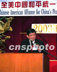 全美中國和平統一促進會聯合會四月十六日晚在紐約華埠舉行籌款餐會,會長程君復在致辭中呼吁海外華人團結起來推動“反獨促統”。作者:趙海燕