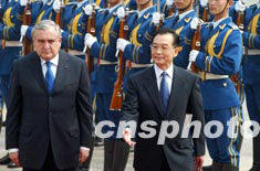 組圖:溫家寶舉行儀式歡迎法國總理拉法蘭