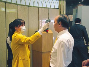 澳門博彩股份有限公司繼日前發出指引,要求員工注重個人衛生,做好預防非典型肺炎的工作后,為進一步保障屬下娛樂場顧客和員工的健康,避免非典型肺炎在娛樂場內蔓延,決定進一步提升屬下娛樂場的防炎措施,自資購置二十多部手提式紅外線體溫測量器,以便為所有進入娛樂場的顧客及員工測量體溫。