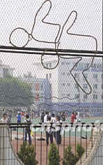 近一周來,中國各地學生沒有新發病例報告,全國非典型肺炎防治組疫情分析專家聶軍認為,學生中的疫情已得到基本控制。圖為復課后的北京高考生積極進行戶外體育鍛煉。作者:廖文靜