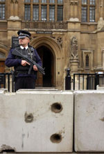 自9.11事件發(fā)生以來,英國警方就加強了對英國國會大廈的警戒程度,荷槍實彈的武裝警察終日守衛(wèi)在國會大廈的主要出口。英國上議院主席日前表示,在目前的政治環(huán)境下,對英國國會大廈的安全問題不能有絲毫的松懈思想。他呼吁全倫敦市民都應該加強對潛在恐怖襲擊的警惕性,如果市民一旦發(fā)現(xiàn)任何可疑跡象,他們應該馬上向倫敦警方報告。(春風)