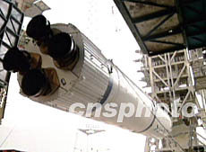 五月二十五日零時三十四分,中國在西昌衛星發射中心用“長征三號甲”運載火箭,成功地將第三顆“北斗一號”導航定位衛星送入太空。圖為裝載衛星現場。中新社圖