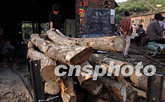 5月28日,河南安陽安利煤礦井口一批用作支柱的木料等待運往井下。由于出現新的坍塌和涌水,救援人員及時運送木料至井下加固巷道,以保護救援人員的安全,加快救援進度。作者:慎重