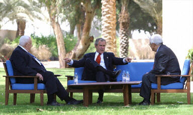 布什主持了巴勒斯坦自治政府總理阿巴斯與以色列總理沙龍之間的峰會,隨后結束就任總統兩年半來首次親自到中東進行謀和的訪問。