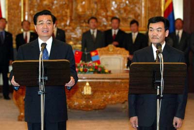 胡錦濤強調(diào)指出,遠親不如近鄰,中國新一屆中央領(lǐng)導(dǎo)集體將按照與鄰為善、以鄰為伴的方針,以更積極的姿態(tài)發(fā)展同蒙古的友好合作。