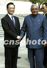 會談前,溫家寶總理在人民大會堂東門外廣場為瓦杰帕伊總理舉行了隆重的歡迎儀式。會談結束后,雙方將舉行有關文件的簽字儀式。