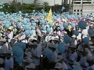 據臺灣媒體報道,臺電員工及眷屬等3000人,27日上午浩浩蕩蕩齊聚世貿大樓前,向參加“非核家園大會”的陳水扁表達抗議。而陳水扁則已在上午公開宣示將在明年3月20日或之前舉辦“核四”等重大議題的所謂“公投”。