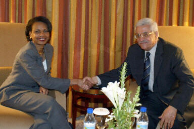 6月28日,美國國家安全顧問賴斯在巴勒斯坦古城耶利哥會見阿巴斯和其他巴勒斯坦官員,并對巴勒斯坦武裝原則上同意停火協議表示歡迎。賴斯將于29日會見以色列總理沙龍及其他以色列官員,討論以色列撤軍等實現“中東和平路線圖”的重要問題。