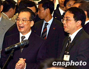 圖:國務院總理溫家寶熱情問候記者