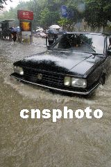 今天早晨可以看到,南京城區(qū)幾乎所有路面都有積水,不少地段水深超過半個(gè)自行車輪子,下關(guān)一些街道的積水甚至深達(dá)一米多,公交及出租車在水中緩慢移動(dòng)著,路邊隨處可見排氣管進(jìn)水拋錨的車輛。在新街口至中央路一線,多處路段水深過膝,不少趕時(shí)間的市民們艱難地涉水前行。