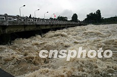 七月十一日凌晨,為了減輕淮河連日降雨給淮河干堤帶來的巨大防洪壓力,安徽阜陽王家壩進水閘繼七月三日后再度開啟。中新社記者:盛佳鵬