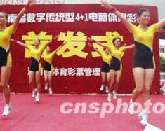 七月十二日,海南省率先在全國推出“四加一”體育彩票新玩法。在海口金世紀廣場舉行的首發儀式上,模特跳舞表演助興。作者:王辛莉