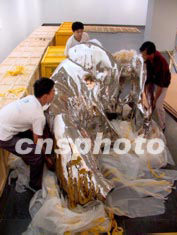“威尼斯雙年展”自一八九五年設立以來已有百余年歷史,它被譽為藝術界的“奧林匹克”,中國在“二00三年第五十屆威尼斯雙年展”中首次建立“中國館”并設在廣州廣東美術館。該展將于二十日開幕,圖為工作人員正在布展。作者:羅仰明