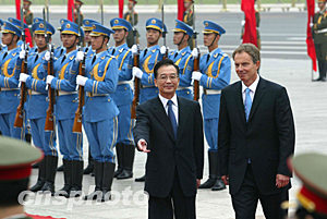 會談開始前,溫家寶在人民大會堂東門外廣場為布萊爾舉行了歡迎儀式。