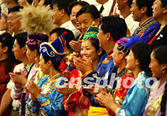 中國共青團第十五次全國代表大會二十二日在北京開幕,身著艷麗服飾的少數民族代表成為會場上靚麗的風景。中新社記者:滿會喬