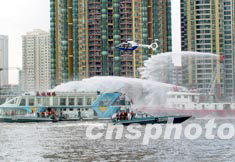 據報道,這次演練現場位于珠江河畔的廣州市二沙島,演練項目分為反恐怖裝備展示、反爆炸襲擊、反生化襲擊、反水上劫持人質、反劫機等5各項目。上午9點左右,隨著紅色信號彈升騰在珠江上空,反恐怖聯合演習正式拉開帷幕。首先出場的編隊由裝載著各種精良裝備的車輛方隊和水上船艇、空中直升機、防暴裝甲車等車輛組成。立體地展現了廣東省反恐職能部門的力量。反恐裝備展示結束后,4個演習項目的綜合實戰演練迅速展開。