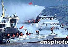 福建海警進行反劫持及海難救助演習