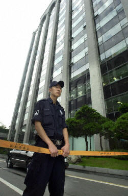 韓國現代集團峨山公司董事長鄭夢憲在漢城市中心的辦公樓自殺現場。