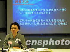 香港中文大學五日公布的調查結果顯示,與92年時相比,香港大專學生對性騷擾問題的意識仍然不高。圖為負責這項研究工作的香港中文大學心理學系教授鄧素琴。作者:裘之越