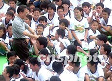 曾蔭權出席香港少年警訊滅罪夏令營活動,受到少年們的熱烈歡迎。中新社記者:錢興強