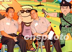 香港政務司司長曾蔭權、警務處長曾蔭培出席香港少年警訊滅罪夏令營活動。中新社記者:錢興強