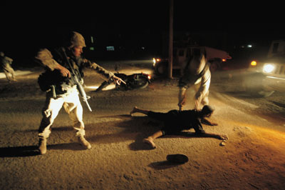 對美軍來說,另外一個重要的源是在巷戰(zhàn)中俘獲的伊拉克游擊分子。美國人會“蓄意”挑起沖突,請君入甕。譬如說,他們會將一輛沒有任何掩護的巡邏坦克開到可疑地區(qū)。伊拉克游擊分子見此“良機”,便會貿然出來行動。坦克手鎖定伊拉克發(fā)動進攻的方位后,便迅速請求支援。美軍會包圍住整個街區(qū),特種分隊對游擊分子藏身之地發(fā)動強攻。當然,所有被俘的伊拉克人都被認為是薩達姆的“同黨”,是薩達姆資助他們進行抵抗行動。所以,這些俘虜均被拷問,讓他們供出從何人手中得到買武器的錢。