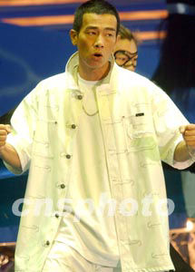 香港歌星謝霆鋒 ,在二十三日晚紅(石+勘)香港體育館舉行的2003年度香港小姐競選決賽上演唱 。 中新社記者:錢興強
