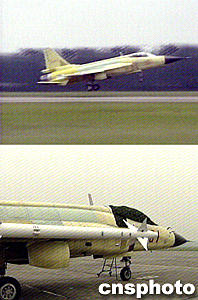 由中國航空工業總公司所屬單位研制的新型全天候多用途輕型殲擊機“梟龍”(超七)戰機,日前在成都舉行首飛儀式,取得圓滿成功。該戰機具備突出的中低空和高亞音速作戰能力。中新社圖