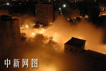 爆破中的中華全國總工會大樓。中新社記者 武仲林攝
