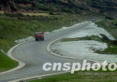 中國在著名觀光勝地四川省九寨溝新建的機場,即將在九月二十八日通航。暢通的機場高原公路兩邊采用薄膜養草術保護環境。中新社記者:賈國榮