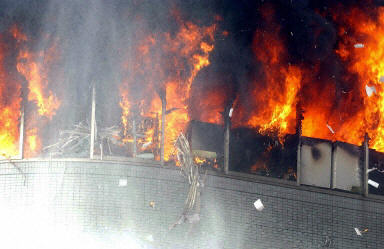 監(jiān)控人質(zhì)情況的電視攝像機(jī)拍下了爆炸的情形。爆炸發(fā)生在當(dāng)?shù)貢r(shí)間下午1點(diǎn)鐘(北京時(shí)間中午12點(diǎn))左右,爆炸的沖擊波震飛了四樓一家速遞公司的窗戶,碎裂的玻璃和紛飛的文件像雨點(diǎn)一樣落到樓下街道上。鏡頭還拍到一名傷者被救援人員抬走。