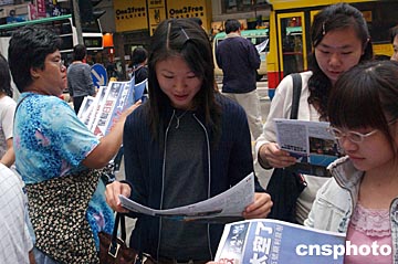香港市民爭看號外。“神舟”五號飛船十月十五日順利升空,香港傳媒特發(fā)號外,圖為香港市民在街頭爭看號外。中新社記者:錢興強(qiáng)