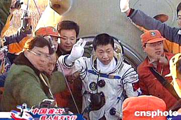 圖:中國首位航天員楊利偉自主走出返回艙