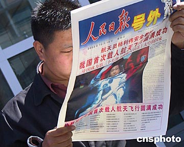 香港輿論聚焦“神舟”五號征空成功市民紛紛搶閱