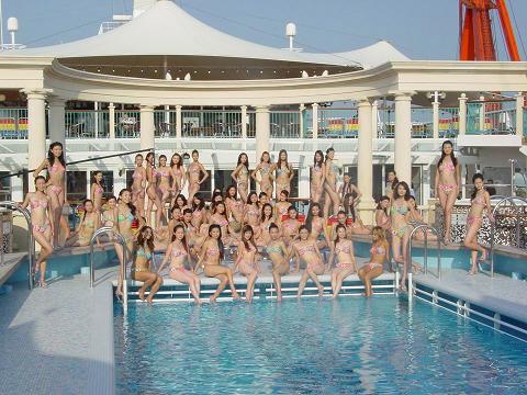 當(dāng)佳麗們乘坐的麗星郵輪獅子星號(hào)從香港行駛到海口時(shí),身著三點(diǎn)式泳裝的50名佳麗宛如出水芙蓉,驚艷“獻(xiàn)身”在郵輪上的露天游泳池旁。面對(duì)攝像鏡頭和船上中外游客發(fā)出的驚嘆聲,佳麗們自信的展現(xiàn)各種姿態(tài)。