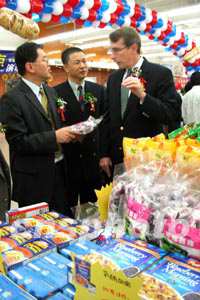 昆明市有關(guān)方面負(fù)責(zé)人、美國(guó)駐上海總領(lǐng)事館農(nóng)業(yè)領(lǐng)事孔銳石,以及美國(guó)肉類出口協(xié)會(huì)、美國(guó)馬鈴薯協(xié)會(huì)、加州杏仁商會(huì)、阿拉斯加海產(chǎn)市場(chǎng)協(xié)會(huì)等六家專業(yè)協(xié)會(huì)的代表和二百多位市民出席了今天的開(kāi)幕式。