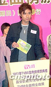 歌星古巨基10月21日在香港出席《2003年TVB8金曲榜頒獎典禮》記者會。中新社記者:鄧慶樂