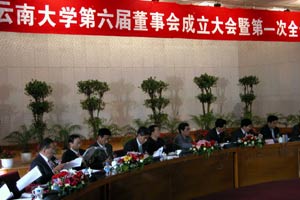 云南大學校長吳松向新一屆董事會報告了第五屆董事會成立五年來該校的建設與發展情況。吳松說,五年來,云南大學全體師生同心協力,遵循“立足邊疆、服務云南、辦出特色”的辦學思路,全面推進學校的各項建設事業,使過去的五年成為歷史上改革力度最大,建設速度最快、發展勢頭最好的時期。