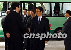 十月二十七日,滬港經貿合作會議在香港禮賓府舉行,圖為上海市市長韓正(中)、上海市副市長周禹鵬(右)等上海高官出席該會議。中新社記者:潘索菲