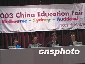 2003中國教育展10月28日在新西蘭第一大城市奧克蘭開幕,中國27所著名高等學府參加展覽,引起新西蘭政府高層、教育界和社會公眾關注。中新社記者劉雨生攝影