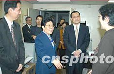 美東時(shí)間十一月六日上午,正在紐約訪問的中國(guó)國(guó)務(wù)院僑務(wù)辦公室主任陳玉杰(左二)在中國(guó)駐紐約總領(lǐng)事劉碧偉(右二)陪同下,來到美國(guó)《僑報(bào)》編輯部,看望采編人員。中新社記者:陳建