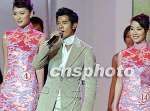 香港藝員陳煒11月8日晚出席在香港會展中心舉行的“2003中華小姐環球大賽”總決賽頒獎儀式。中新社記者:錢興強