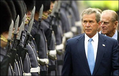 美國總統(tǒng)布什18日晚抵達倫敦,開始對英國進行國事訪問。他將是繼1982年里根訪英以來,第一位正式應(yīng)伊麗莎白女王之邀到英國進行國事訪問的美國總統(tǒng)。不過,與里根訪英相比,布什這次有了很大的不同。