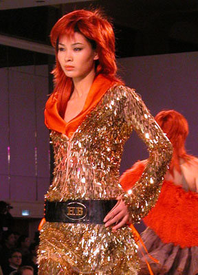 中國國際時裝周上東北虎皮草公司宣布中國推出第一個高級晚裝品牌NE·TIGER,圖為高級皮草晚裝展示玫瑰紅個性色調(diào)皮草。