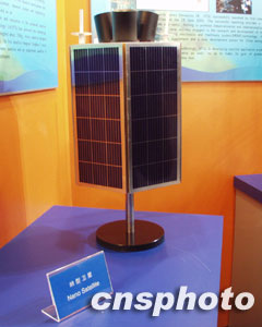 中國航天科工集團參展的納型小衛星1:1模型。中新社記者 余瑞冬攝